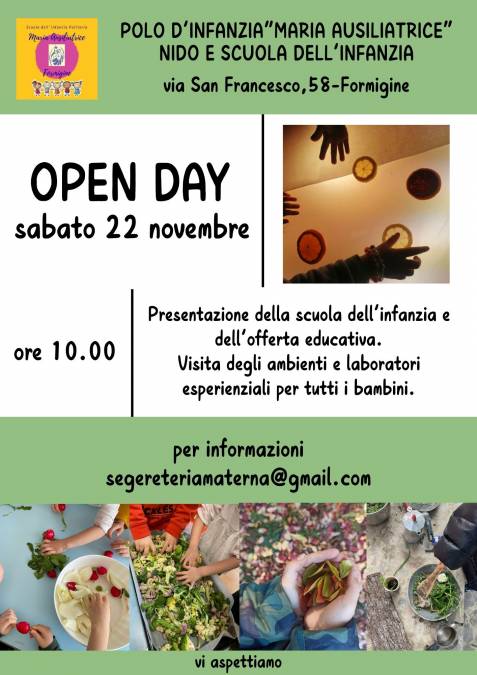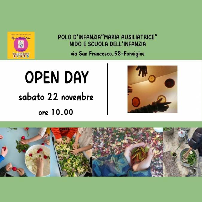 siete invitati insieme ai vostri bambini, all'Open day della nostra scuola.